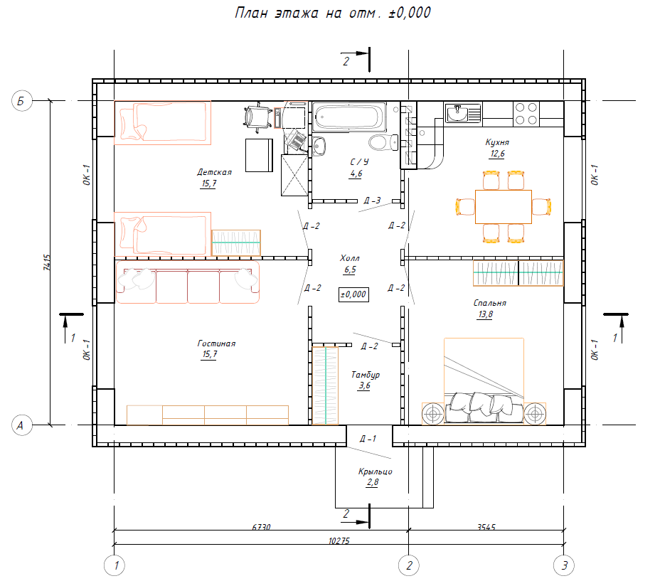 Компактный, уютный одноэтажный жилой дом площадью 75,3 кв.м, имеет габаритные размеры 11,3х8,4м.